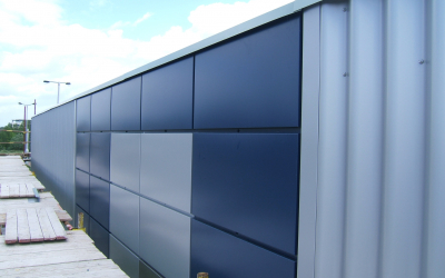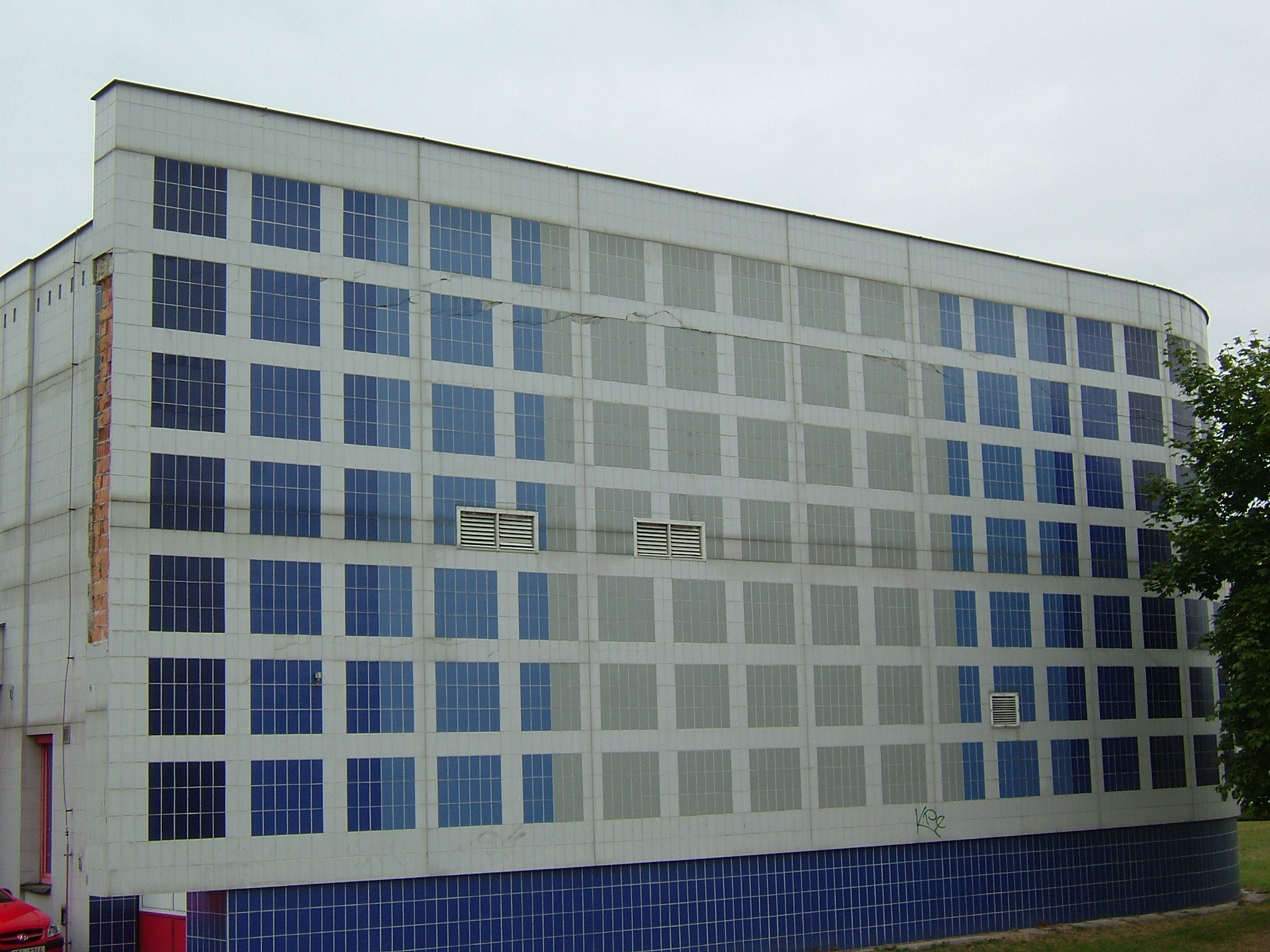 Původní keramický, již značně poškozený obvodový plášť byl nahrazen systémovým odvětrávaným pláštěm, z plechových kazet